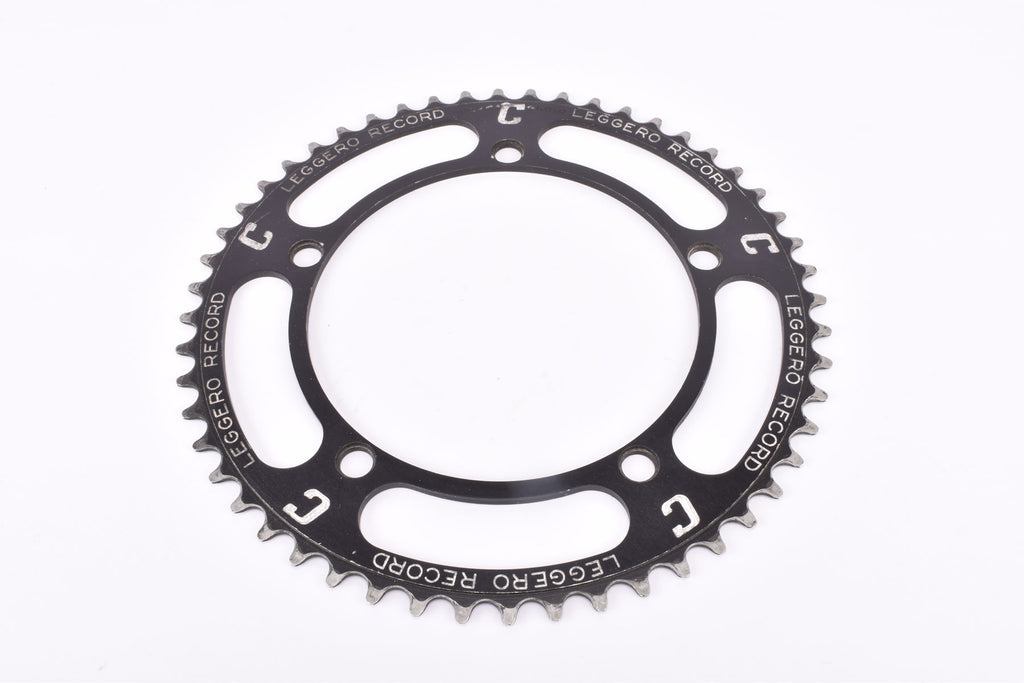 Black anodized Chesini Leggero Record Pantographed Campagnolo Nuovo Record #753 Chainring with 52 teeth and 144 BCD from the 1970s - 1980s Black anodized Chesini Leggero Record Pantographed Campagnolo Nuovo Record #753 Chainring with 52 teeth and 144 BCD from the 1970s - 1980s