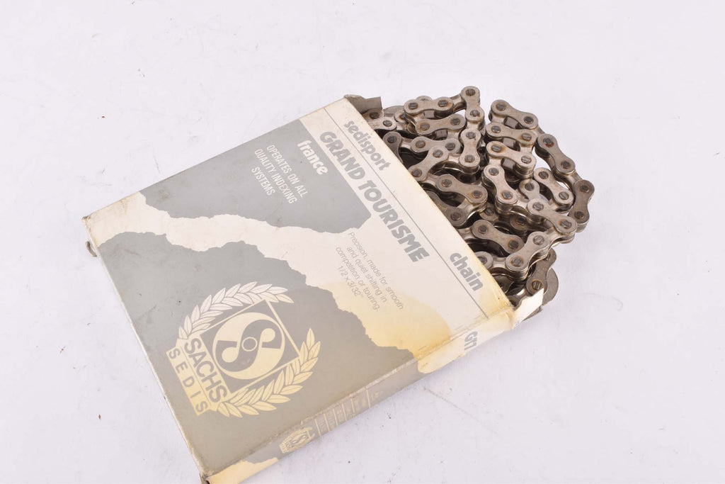 NOS/NIB 7-speed / 8-speed Sachs-Sedis Grand Tourisme Argent #GT7 SA Sedissport Chain in 1/2" x 3/32"with 112 links from the 1980s - 1990s NOS/NIB 7-speed / 8-speed Sachs-Sedis Grand Tourisme Argent #GT7 SA Sedissport Chain in 1/2" x 3/32"with 112 links from the 1980s - 1990s