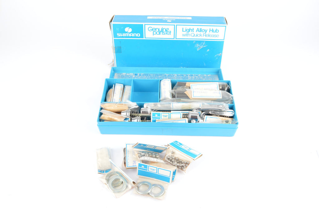 NOS/NIB Shimano Genuin Parts Kit, Light Alloy Hub with Quick Release, original Box full of Spar Parts NOS/NIB Shimano Genuin Parts Kit, Light Alloy Hub with Quick Release, original Box full of Spar Parts