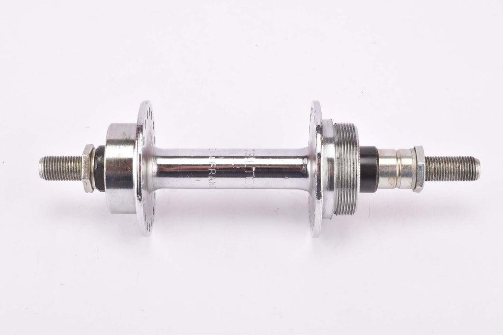 Moyeux Exceltoo Chrome plated steel rear Hub with english thread (BSA) solid axle and 36 holes from the 1950s Moyeux Exceltoo Chrome plated steel rear Hub with english thread (BSA) solid axle and 36 holes from the 1950s